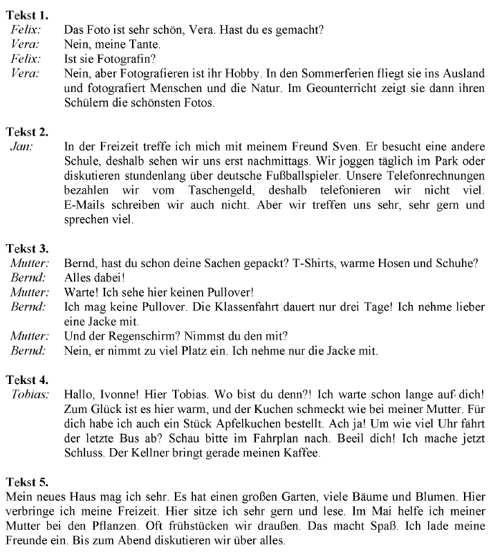Przeczytaj pięć tekstów. Na podstawie informacji zawartych w tekstach wybierz właściwe odpowiedzi.